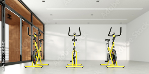 Heimtrainer mit Plexiglas Absperrung im Fitnesscenter
