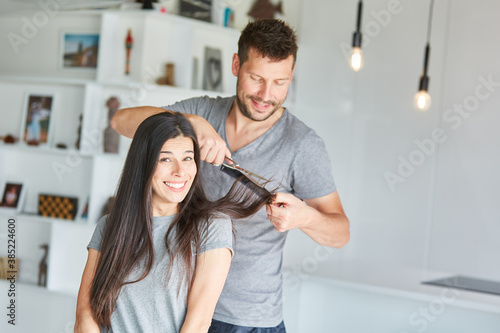 Paar schaut Tutorial zum Haare selber färben am Computer