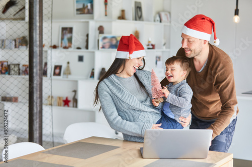 Glückliche Eltern heben Sohn hoch als Familie zu Hause