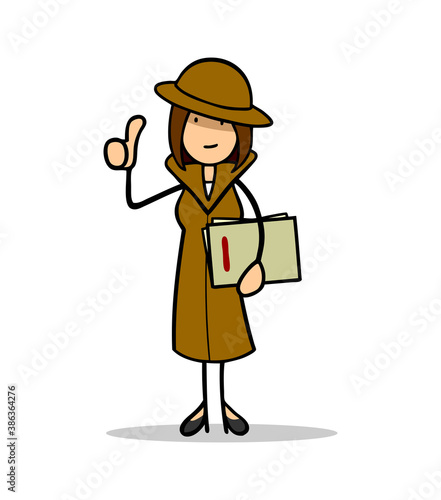 Cartoon Frau als Agentin oder Spion vom Nachrichtendienst