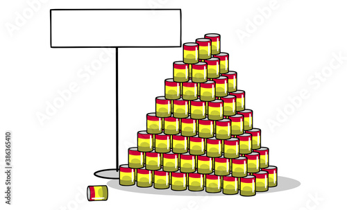 Stapel Konserven Dosen mit leerem Angebot Schild