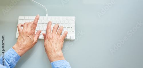 Seniorin arbeitet am Computer online