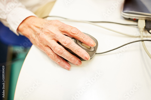 Senioren Gruppe arbeitet konzentriert mit Laptop