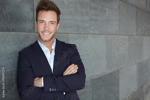 Lächelnder Geschäftsmann mit verschränkten Armen