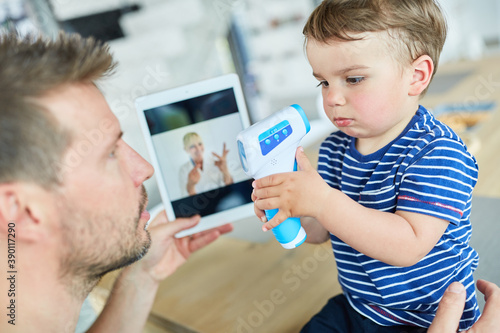 Vater und Kind in der Online Sprechstunde mit Ärztin