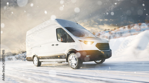 Lieferwagen Van auf Straße bei Schnee im Winter