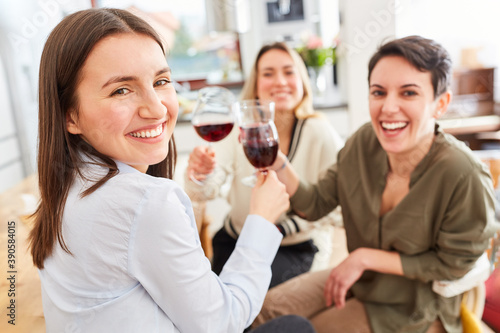 Zwei Frauen als Freundinnen stoßen auf Feier mit Rotwein an