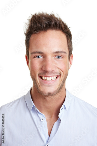 Hand mit Lupe sucht in Portraits als Umfrage und Marktforschung Konzept
