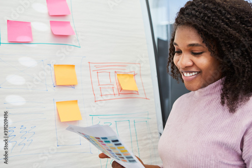 Kreative afrikanische Grafikdesignerin am Flipchart