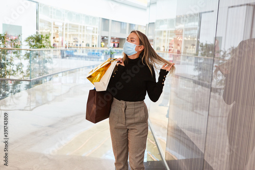 Frau als Kundin mit Maske beim Einkaufsbummel