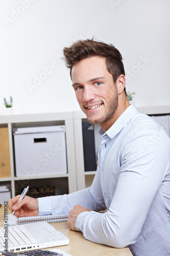 Hand mit Lupe sucht in Portraits als Umfrage und Marktforschung Konzept