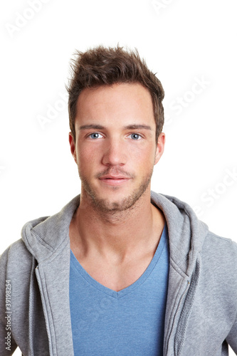 Hand mit Lupe sucht in Portraits als Umfrage und Marktforschung Konzept