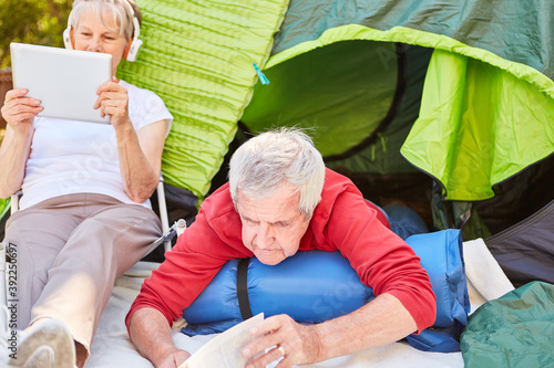 Hand mit Lupe sucht in Portraits als Umfrage und Marktforschung Konzept