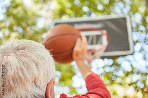 Senior Mann konzentriert sich beim Freiwurf