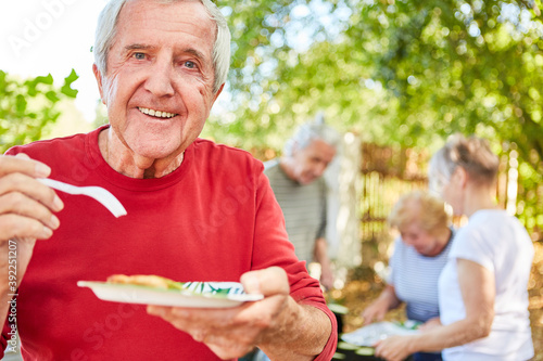 Fröhliche Senioren beim Kaffee trinken und Kuchen essen zusammen im Altersheim