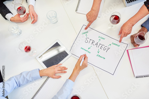 Hände zeigen auf einen Strategie Plan