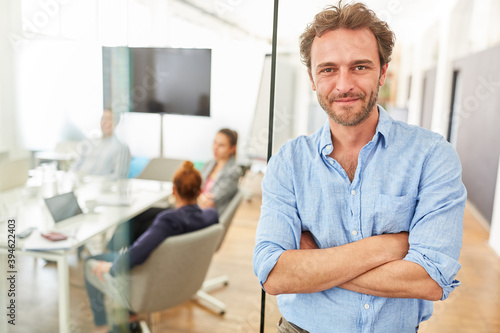 Panorama aus Silhouetten von Geschäftsleuten vor bunten Business Portraits