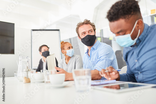 Studenten mit Mundschutz lernen in Teamwork