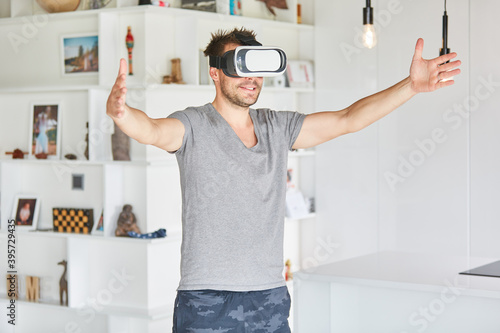 Mann mit VR-Brille macht virtuelle Raumgestaltung