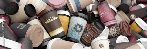 Viele verschiedene Kaffeebecher auf einem Haufen