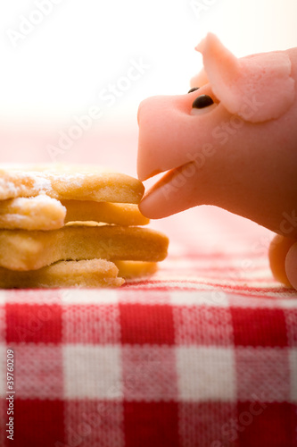 Glücksschwein auf Tischdecke