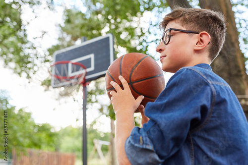 Zwei Kinder mit Basketball im Sommer im Ferienlager
