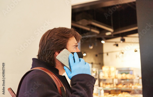 Kunde mit Mundschutz wegen Covid-19 Pandemie