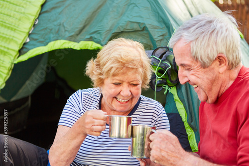 Paar Senioren trinkt morgens eine Tasse Kaffee