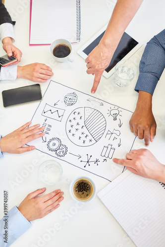 Hände von Business Leuten zeigen auf Diagramme