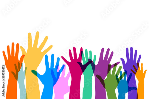 Ausgestreckte transparente bunte Hände als Gemeinschaft oder Schule