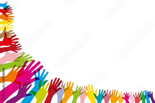 Bunte Hände im Halbkreis als Hintergrund
