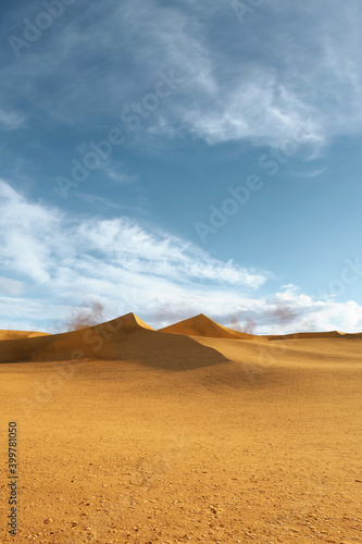 Leere Sanddüne und Himmel mit Wolken über Sahara Wüste