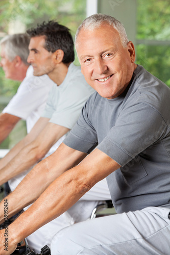 Trainierin korrigiert Haltung eines Senioren beim Turnen