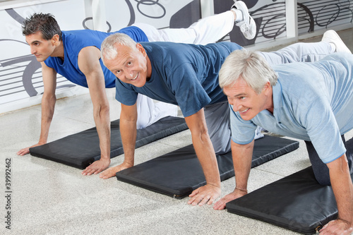 Trainierin korrigiert Haltung eines Senioren beim Turnen