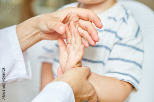 Child undergoing osteopathy or physiotherapy because of hand