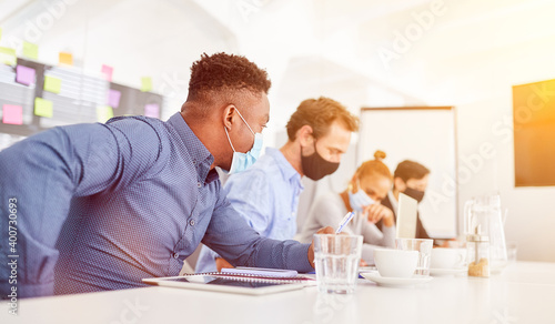 Panorama aus Silhouetten von Geschäftsleuten vor bunten Business Portraits