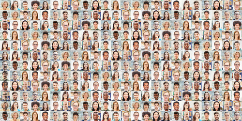 Panorama aus Silhouetten von Geschäftsleuten vor bunten Business Portraits
