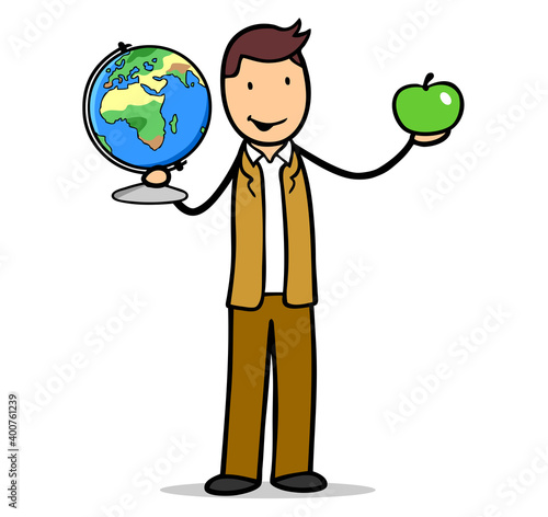 Cartoon Lehrer mit ABC auf Tafel und Kreide in der Hand