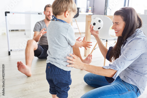 Glückliche Mutter beim Ball spielen mit ihrem Sohn
