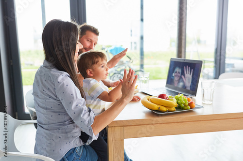 Eltern und Kind geben sich High Five im Wohnzimmer
