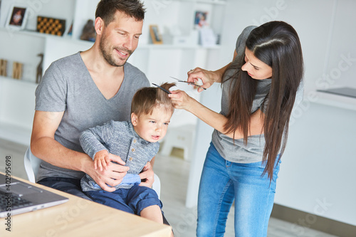 Parents cut their child's hair themselves