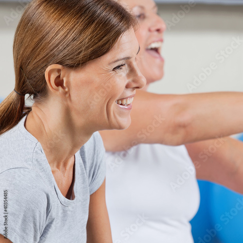Mann und Frau machen Gymnastik im Fitnesscenter
