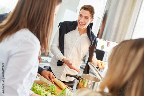 Freunde kochen zusammen Spaghetti Nudeln in Küche für Mittagessen