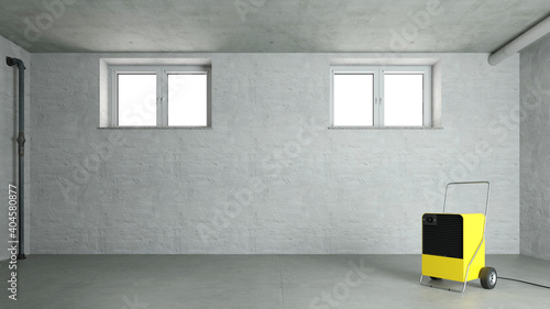 Bautrockner oder Luftentfeuchter in einem feuchten Keller