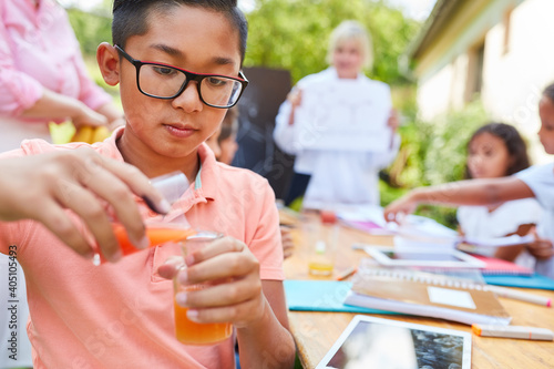 Children have fun doing chemistry experiment