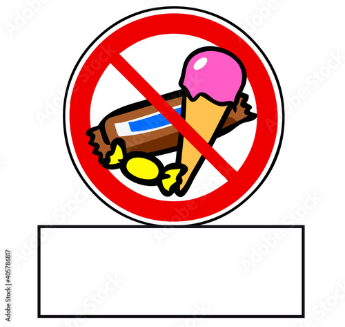 Zuckerverbot Cartoon Schild mit Süßwaren in Verbotsschild