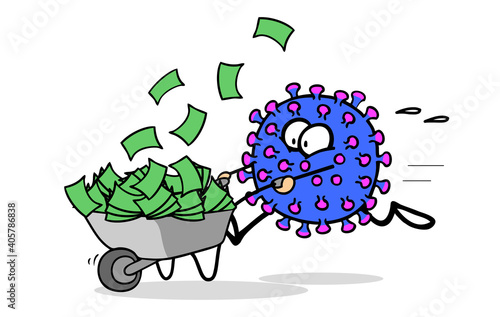 Coronavirus auf Haufen Geld als Covid-19 Wirtschaftskrise
