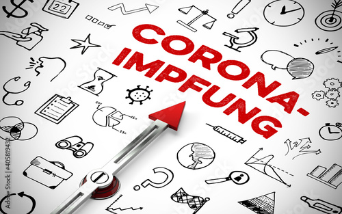 Kompass zeigt auf Schriftzug Corona-Impfung zwischen Icons
