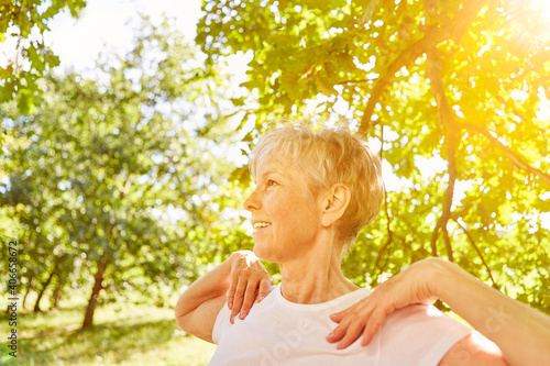 Aktive Seniorin mit Fahrrad oder Tretroller