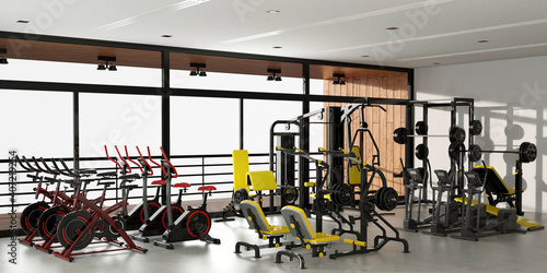 Leeres Fitnesscenter mit vielen Kraftmaschinen